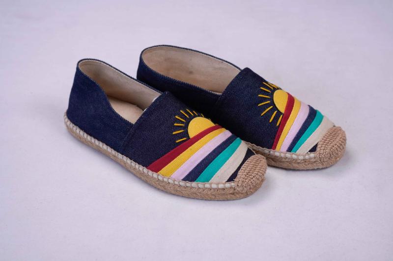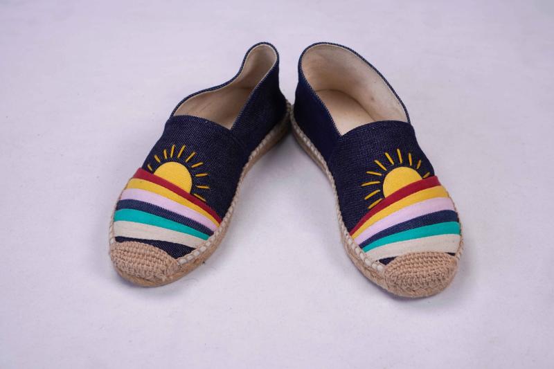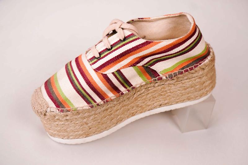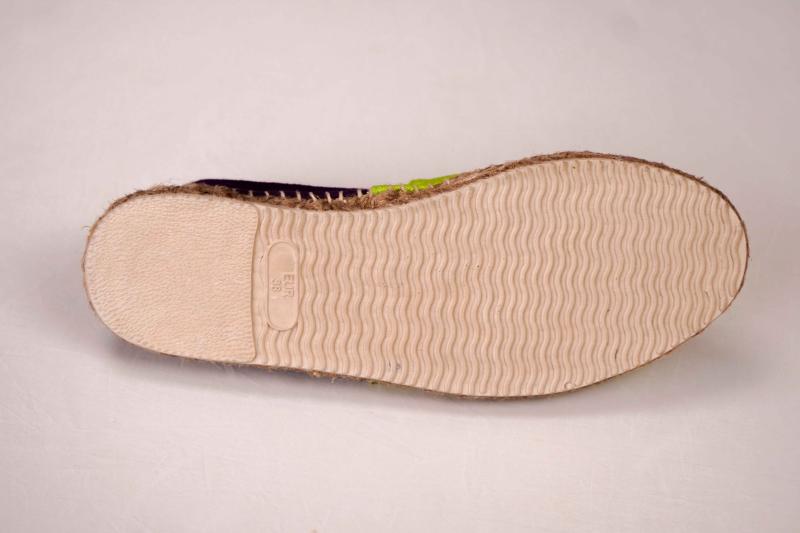 Normally the espadrille shoe is made on top of a base of rope in jute or similar material. One end o...